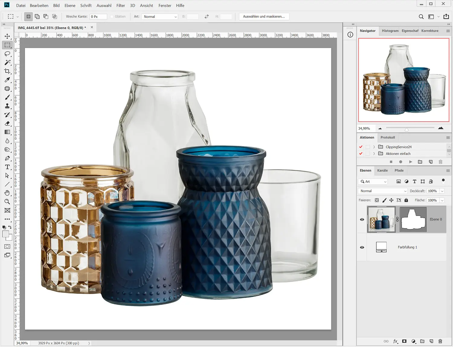 Hierbei werden Bilder ausgefleckt, d.h. es werden kleinere unschöne Stellen wie Staub, Kratzer oder Fusseln auf den Bildobjekten beseitigt, sodass Ihr Produkt eine schöne und sauber wirkende Oberfläche bekommt.