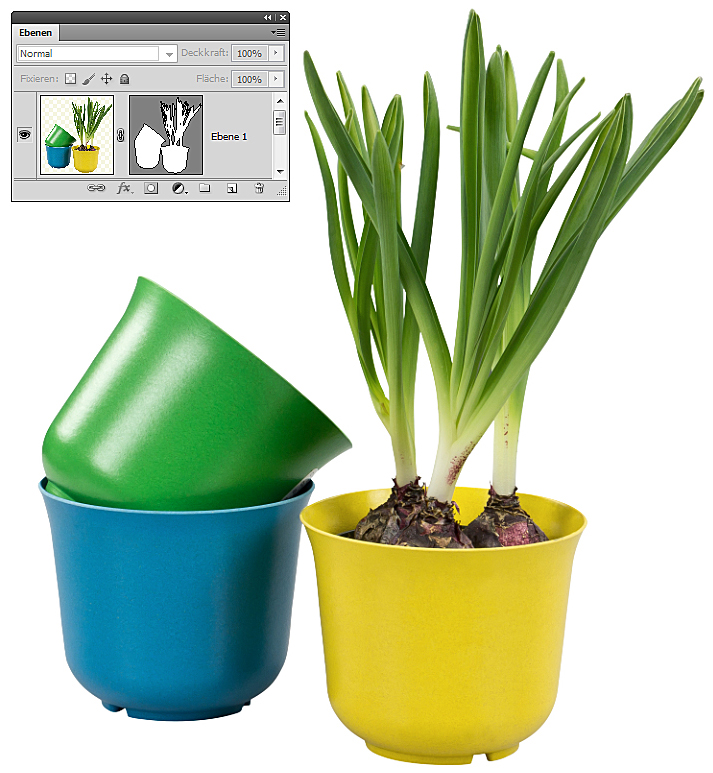 ⇒ Hilfsmittel, die ansonsten auf dem Bild sichtbar bleiben würden, werden anschließend einfach weggeschnitten. - Freigestellte Objekte wirken "sauber" und ansprechend
